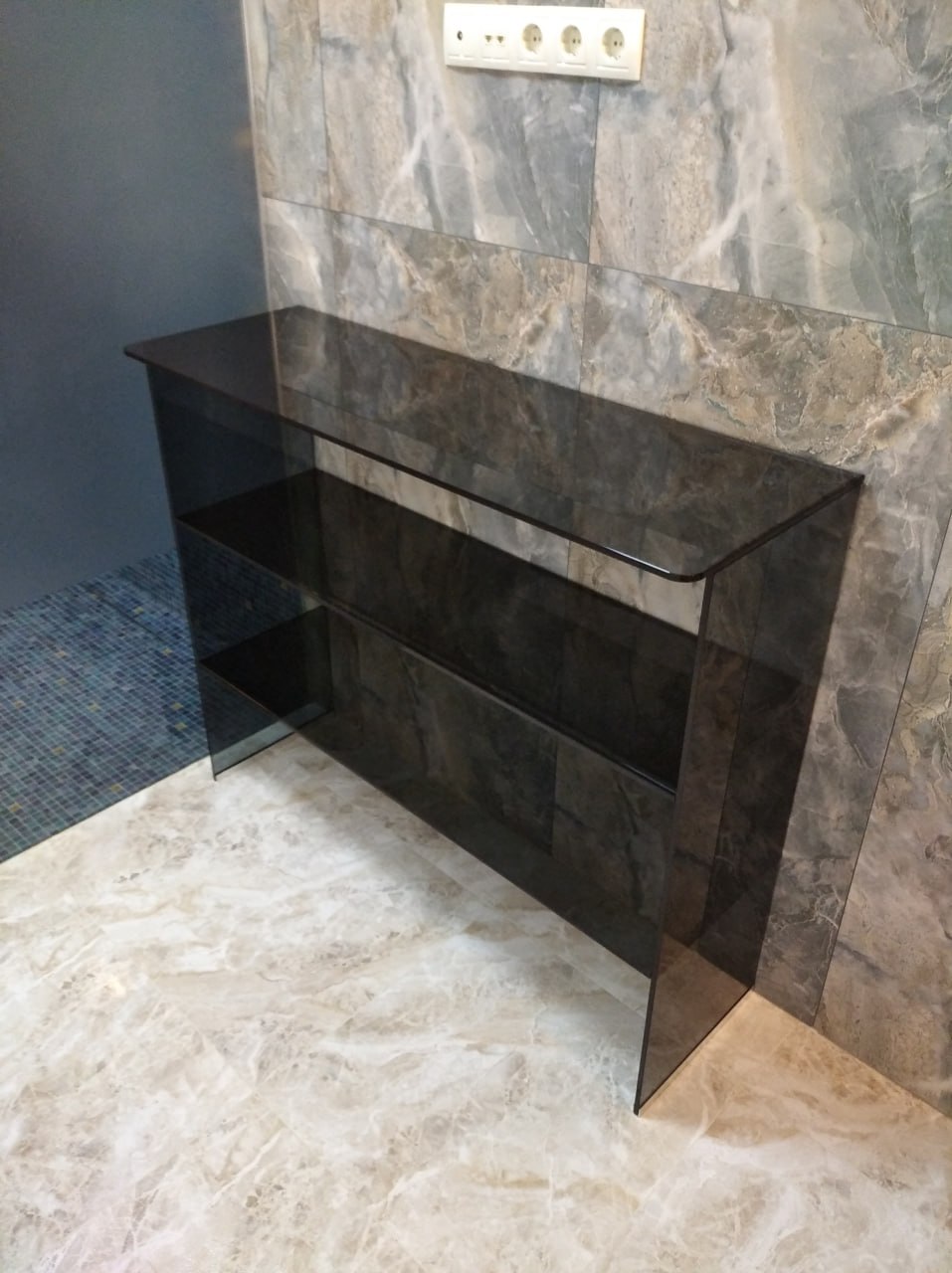 - Безопасность. Все элементы создаются из крепкого закаленного стекла. В случае падения, оно не разобьется на мелкие осколки и не поранит ни посетителей, ни работников салона или магазина. В случае, если витрина разобьется, края осколков будут ровными и не острыми.